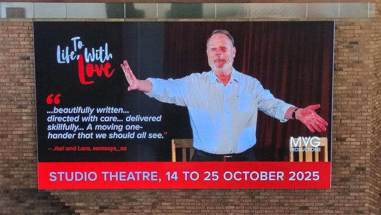 TO LIFE, WITH LOVE featuring John Maytham, after playing in more than ten venues around the Western Cape and at the Hilton Arts Festival, had its most successful season in terms of audience numbers during a two-week run in the Baxter Theatre Studio. Audiences remain moved and engaged by the piece with many sharing their own stories of loss, grief and recovery. The play will have a bit of a hibernation before being revived in 2026 for Johannesburg and elsewhere.