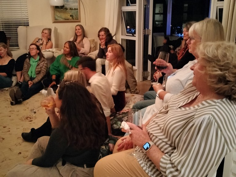 We are keen to tour My Fellow South Africans for at least a year in the build up to the 2024 elections. We will need to play in more than theatres to achieve this goal. To this end, we are exploring performances in people's homes. They play host, invite friends, family and neighbours who pay a fee, and they get to see the show! Sheila Duchenne, a great supporter of the arts, hosted our first home show. Twenty-three people had soup, bread and cheese and then watched Kim perform. We had a great discussion afterwards. It was an affirmation of the home as a primary source of theatre distribution!