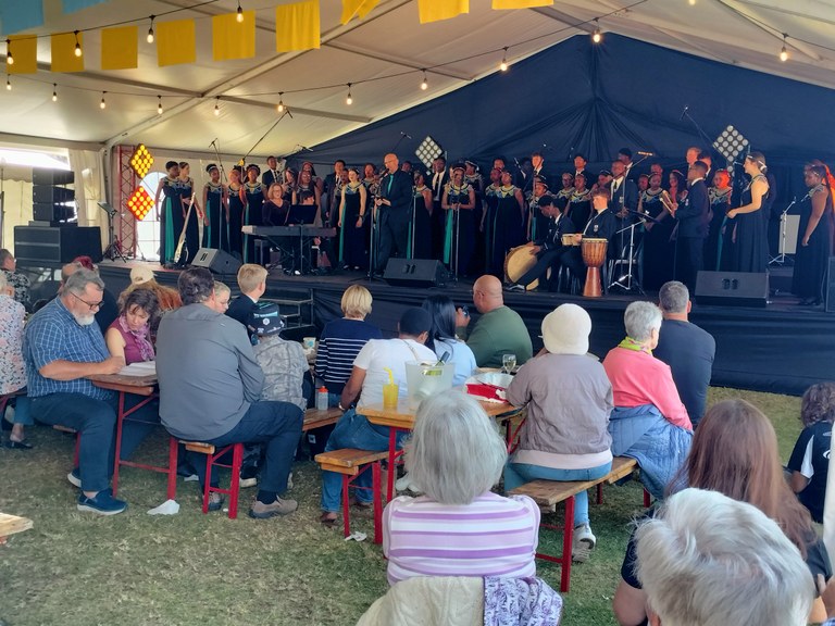 Notwithstanding the death of founder Sue Clarence earlier this year, the Hilton Arts Festival (8-10 August) was thriving with sales up on last year and a great buzz, quite different to the almost ghost-town like atmosphere at the National Arts Festival in Makhanda a month before. John Maytham performed To Life, With Love at 20:30 on Saturday 9 August and at 10:30 the next morning to a very warm reception from an audience that identified greatly with the themes of the play. There were many stories - and tears - that were shared with us, particularly after the Sunday morning show. It's been such an affirmation of the role of theatre as a form of catharsis and as granting licence for people to feel emotion and to tell their own stories of loss, hurt and recovery.