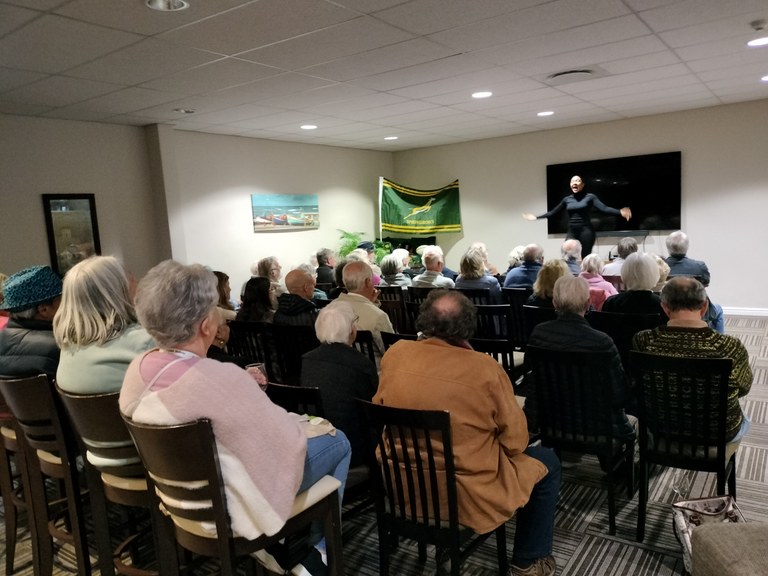 One of the highlights of the tour of My Fellow South Africans was the visit to Evergreen Retirement Village on 6 September. The residents responded very warmly to the Kim's performance and to the content and pleaded for more shows to tour to their venue. "We haven't lost our marbles", said one. "We just don't like going out at night". There is definitely a theatre circuit waiting to be developed at retirement homes.