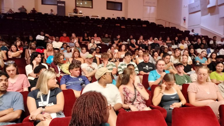 For the third year running, Stellenbosch University invited us to present My Fellow South Africans to first-year students as part of their orientation. With many raised in family and school bubbles, the orientation is devised to introduce them to university life and the play is purposely oriented towards provocation and making the students think and engage with issues that they may not have had to before. The piece was presented to staff and student leaders a week before the mass presentations to students in three performances at the Coetzenberg Stadium.