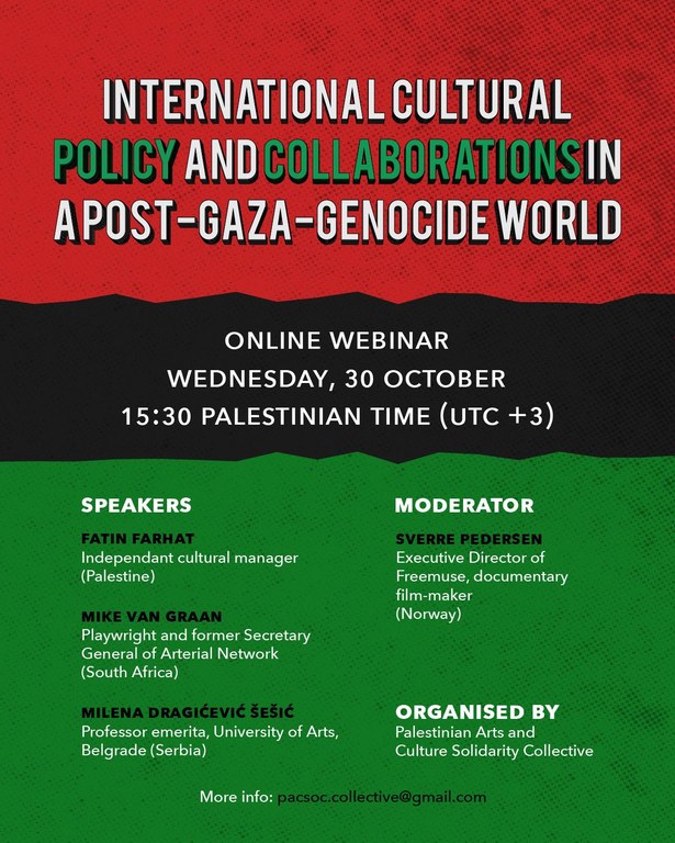 I participated in a panel discussion on 30 October hosted by the Palestinian Arts and Culture Solidarity Collective (PACSOC) on the subject of cultural policy after the Gaza genocide. Till now, international cultural policy and cultural collaboration have been determined largely on the terms of the global north. Human rights, development, cultural industries, countering radicalism and other themes have been advanced by institutions such as the European Commission, UNESCO, British Council and Goethe Institute, themes that have been embraced by cultural actors in the global south because they come with resources and opportunities. But the Gaza genocide has once and for all shattered the myths of human rights, of democracy, of equality and have exposed - most starkly - the white supremacy and racism of so-called liberal democracies that have supported, aided and abetted the slaughter of children, women and other innocent civilians for over a year in Gaza. It is imperative that new terms for international cultural policies and collaborations have to be determined by global south interests and perspectives, and that cultural actors in the global south need to be weaned from dependence on global north funding and co-option to assert and sustain a more humane, more just and anti-racist understanding and pursuit of humanity.