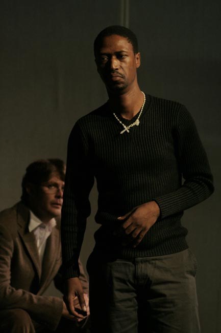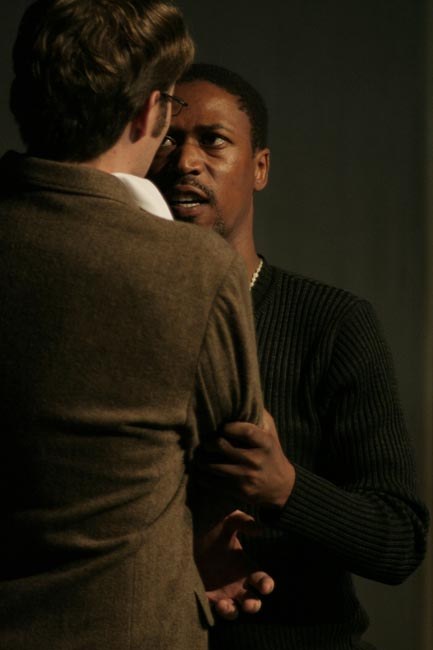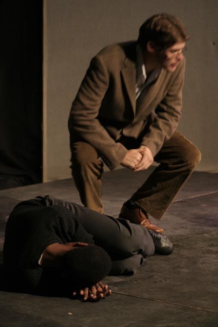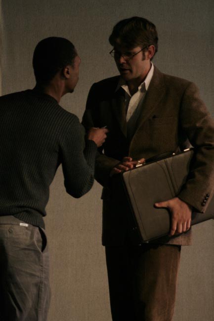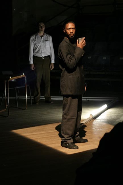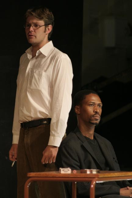Some Mothers’ Sons is the third part of the Dinner Talk trilogy, Thabo for Thabo, developed into a full-length piece in its own right. Whereas Thabo for Thabo focused on the contemporary scene between the arrested Braam (or the English ‘Steve’ in the original script) and his lawyer friend Vusi, Some Mothers’ Sons explores the earlier scene where they first meet in Vusi’s detention cell.